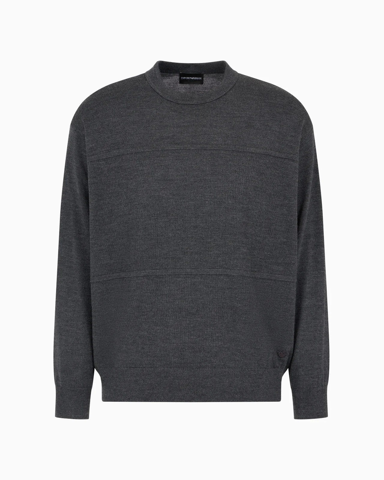 Crew-neck jumper made of pure virgin wool, featuring an oversized horizontal striped effect. Product Code: 6D1MXM1MKBZ10631 Details Composition 100% Virgin Wool Knit Crew neck Long sleeves Rib-knit cuffs and hem Fitting The model is 188 cm tall and is wearing size 48/M (Italian Size)