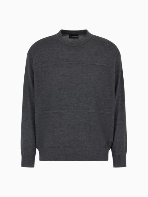 Crew-neck jumper made of pure virgin wool, featuring an oversized horizontal striped effect. Product Code: 6D1MXM1MKBZ1F915 Details Composition 100% Virgin Wool Knit Crew neck Long sleeves Rib-knit cuffs and hem Fitting The model is 188 cm tall and is wearing size 48/M (Italian Size)