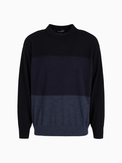 Virgin wool jumper with oversized colour-block stripes