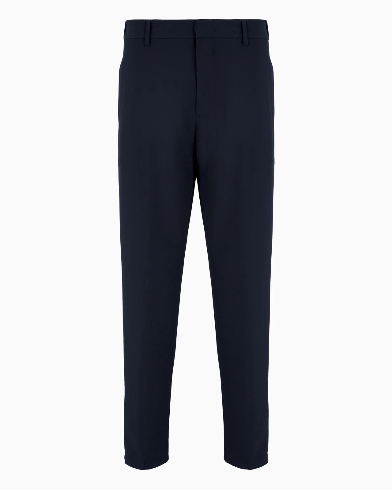 Trousers with an elasticated-waist back, made from a cosy viscose-blend fabric. A versatile and functional piece that guarantees comfort and style for city looks. Product Code: 6D1PM61NFTZ10920 Details Composition 72% Polyester 21% Viscose 7% Elastane Belt loops at the waist and elasticated back Zip, hook and button closure Side inseam pockets Back welt pockets Fitting The model is 188 cm tall and is wearing size 48/M (Italian Size)