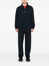 waffle-knit trousers Highlights - Navy blue - Concealed front zip fastening - Elasticated drawstring waistband - Two side slit pockets - Rear welt pocket Imported Composition Polyester 81%, Viscose 16%, Elastane 3% SIZE & FIT Model measurements Height 6 ft 1 in(1.85 m) Bust/Chest 38.18 in(97 cm) Hips 36.61 in(93 cm) Waist 31.49 in(80 cm) FittingInformation Designed for a relaxed tapered leg, allowing a comfortable loose fit above the knee with a closer fit towards the calves Adjust this piece’s waistband to your preference using the drawstring Made from a midweight stretch fabric, this piece offers elasticity and flexibility when worn