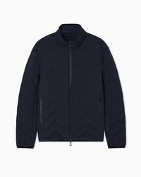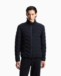 Down jacket with full-zip fastening made from chevron quilted nylon spandex. The fabric used combines its extremely light weight with excellent strength and durability. These characteristics, together with its water-repellent properties, make it a suitable piece for multiple situations, ensuring comfort and performance in different weather conditions. The snug fit from the genuine down filling is enhanced by the quilting. This item belongs to the Essentials selection, the Emporio Armani offering that is an evergreen statement of style: an ongoing collection with clean, well-designed shapes for a wardrobe that meets the demands of any season. These “essential”, versatile pieces are a must-have for the male wardrobe. Nylon Water-repellent Quilted Genuine down padding Full-zip closure Embossed micro-eagle embroidery on the chest Side pockets with zip Heat-sealed exterior zips Long sleeves Two inside pockets with zipped compartments Product Code: EM004947AF18499UB118