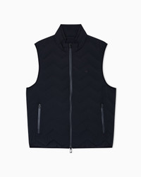 Sleeveless down jacket with full-zip fastening made from chevron quilted nylon spandex. The fabric used combines its extremely light weight with excellent strength and durability. These characteristics, together with its water-repellent properties, make it a suitable piece for multiple situations, ensuring comfort and performance in different weather conditions. The snug fit from the genuine down filling is enhanced by the quilting. This item belongs to the Essentials selection, the Emporio Armani offering that is an evergreen statement of style: an ongoing collection with clean, well-designed shapes for a wardrobe that meets the demands of any season. These “essential”, versatile pieces are a must-have for the male wardrobe. Nylon Water-repellent Quilted Genuine down padding Full-zip closure Sleeveless Embossed micro-eagle embroidery on the chest Side pockets with zip Heat-sealed exterior zips Two inside pockets with zipped compartments Product Code: EM004946AF18499UC001