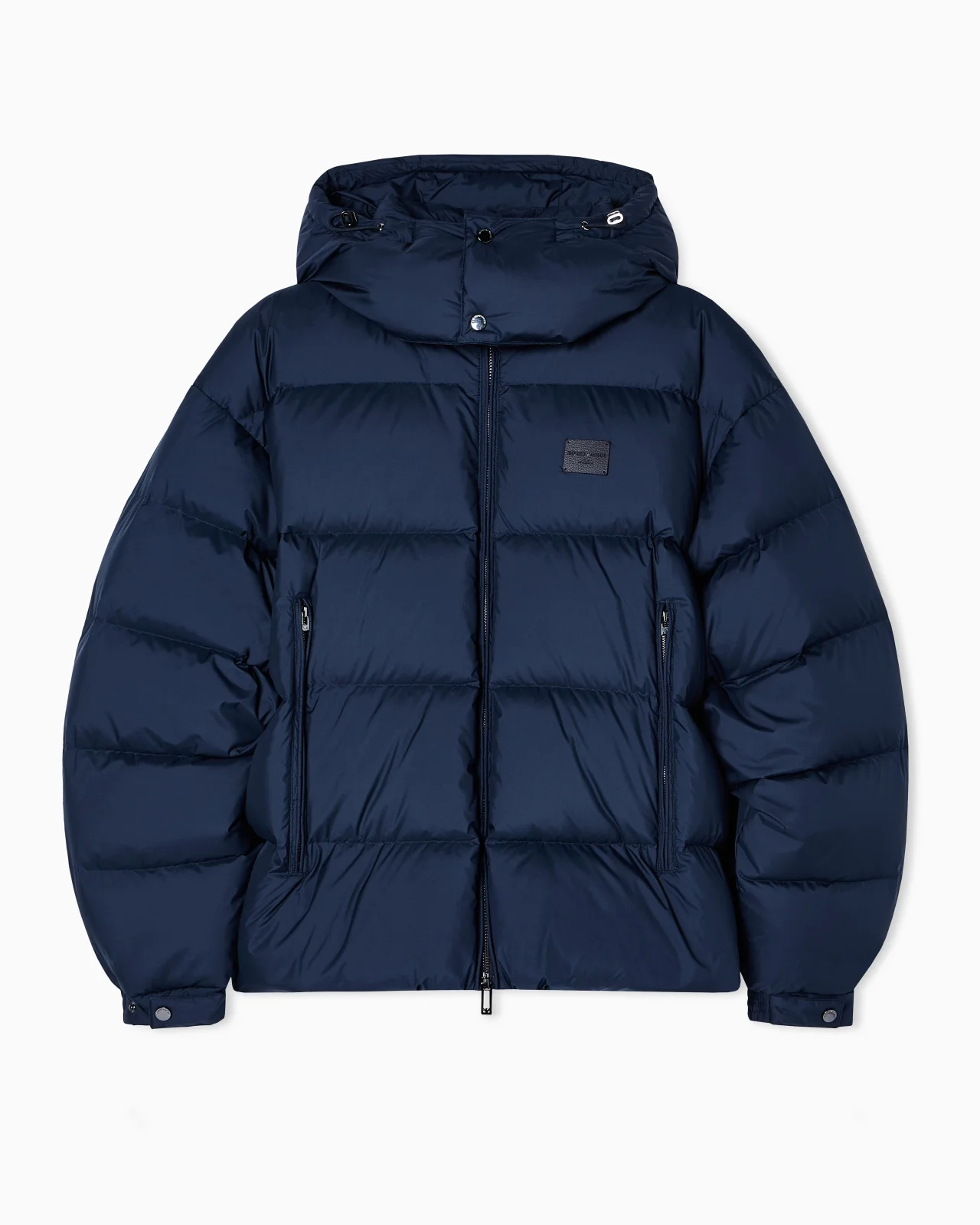 Quilted ultra-fine ripstop nylon down jacket with detachable hood and full-zip fastening. The 100% polyester fabric combines its extremely light weight with excellent resistance and durability, thanks to the ripstop structure of the texture. All these characteristics, together with its water-repellent properties, make it a suitable piece for multiple situations, ensuring comfort and performance in different weather conditions. Technical fabric Water-repellent Ultra lightweight Genuine down padding Hood with pull tabs Full-zip closure Front logo patch Side pockets with zip Chenille pocket lining Long sleeves Press studs on cuffs Hem with inner pulls Product Code: EM003050AF18231UB118