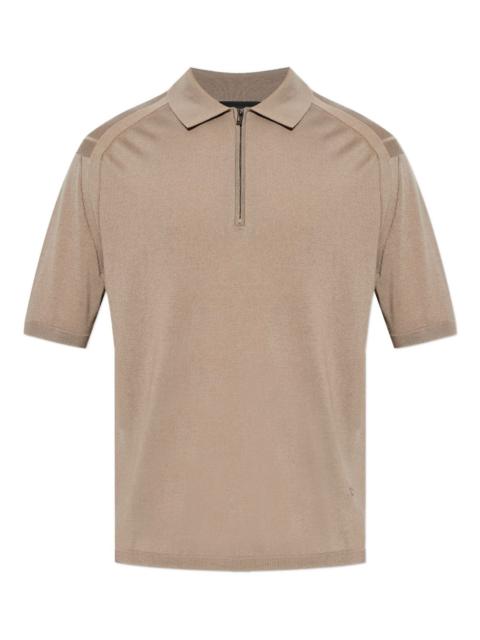 half-zip short-sleeve polo shirt Highlights - Black - Half-zip fastening - Short sleeves - Knitted - Ribbed trims Imported Composition Lyocell 55%, Virgin Wool 40%, Silk 5% Washing instructions Hand Wash