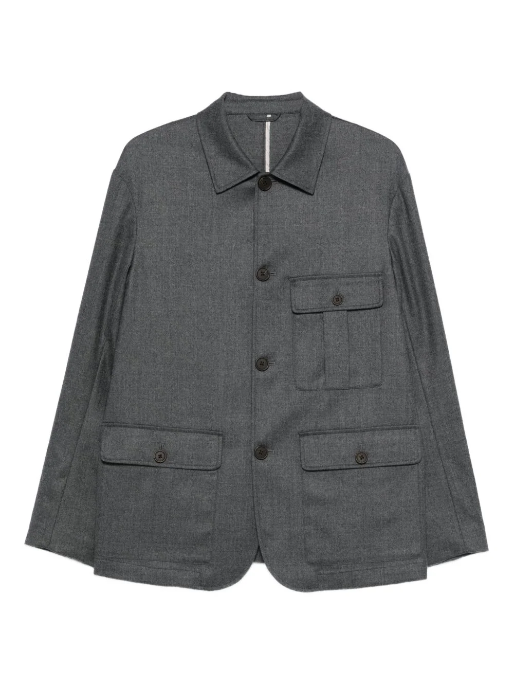 wool-blend shirt jacket Highlights - Dark grey - Flap pockets - Button fastening - Collared neckline Imported Composition Fabric 100% SIZE & FIT Model measurements Height 6 ft 0 in(1.84 m) Bust/Chest 35.82 in(91 cm) Hips 37 in(94 cm) Waist 28.34 in(72 cm) Washing instructions Read Manufacturer Guidelines