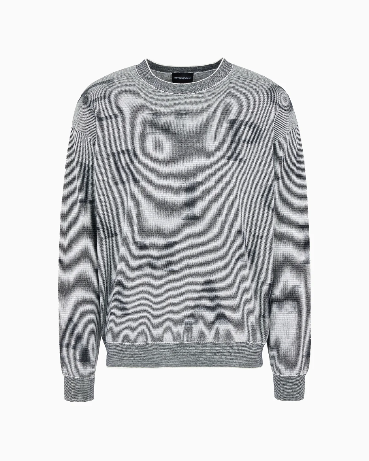 Two-tone micro-striped virgin-wool jumper with all-over lettering