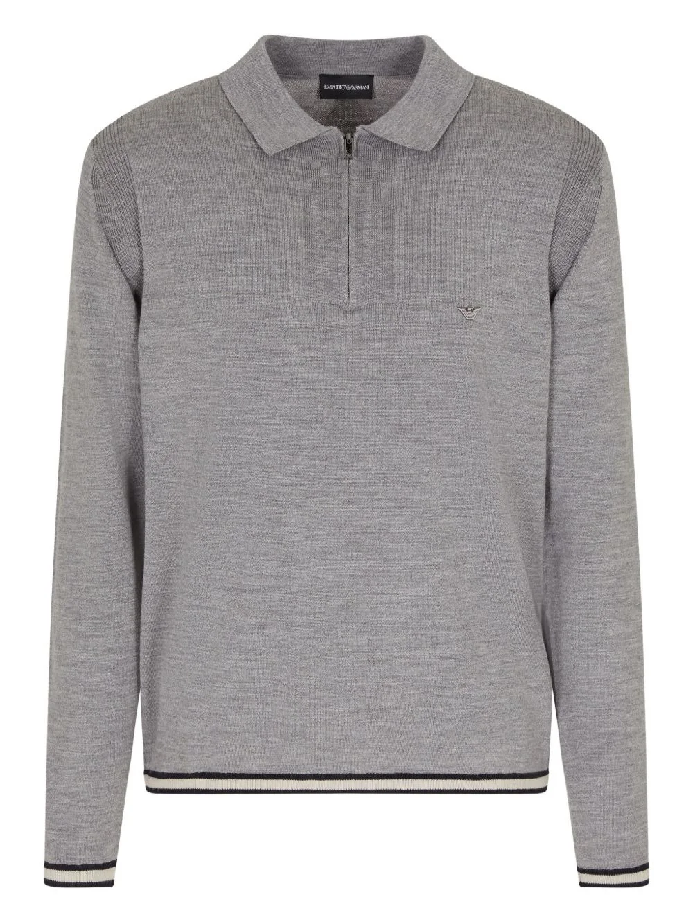 wool polo shirt Highlights - Ash grey - Short front zip fastening - Polo collar - Long sleeves Imported Composition Virgin Wool 100% Washing instructions Read Manufacturer Guidelines