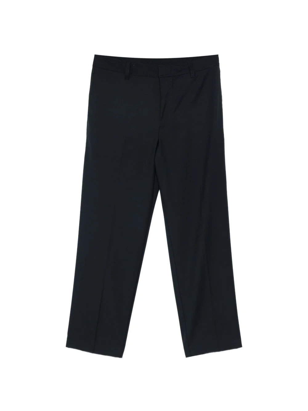 logo detail wool trousers Highlights - Blue - Fly front fastening - Belt loops - Pressed crease - Straight leg - Side seam pockets Imported Composition Outer: Virgin Wool 100% Lining: Polyester 65%, Cotton 35% Washing instructions Dry Clean Only