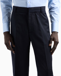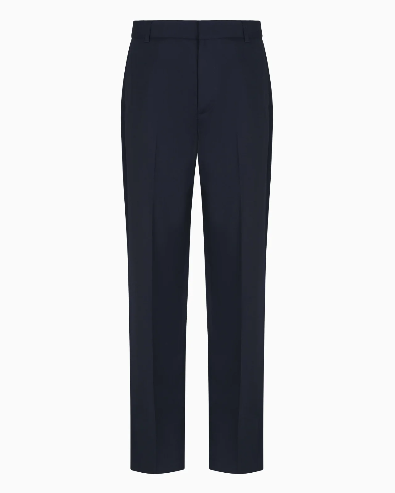 Modern design chinos featuring a dropped crotch. Made in a virgin-wool blend twill, these trousers feel fluid, are ultra lightweight and have an urban appeal, bringing metropolitan style to any look. Lightweight twill Chinos Waist with belt loops Closure with zip, hook and back button Side pockets Dropped crotch Buttoned back double welt pockets EA logo plate Product Code: EM001182AF13726UB118