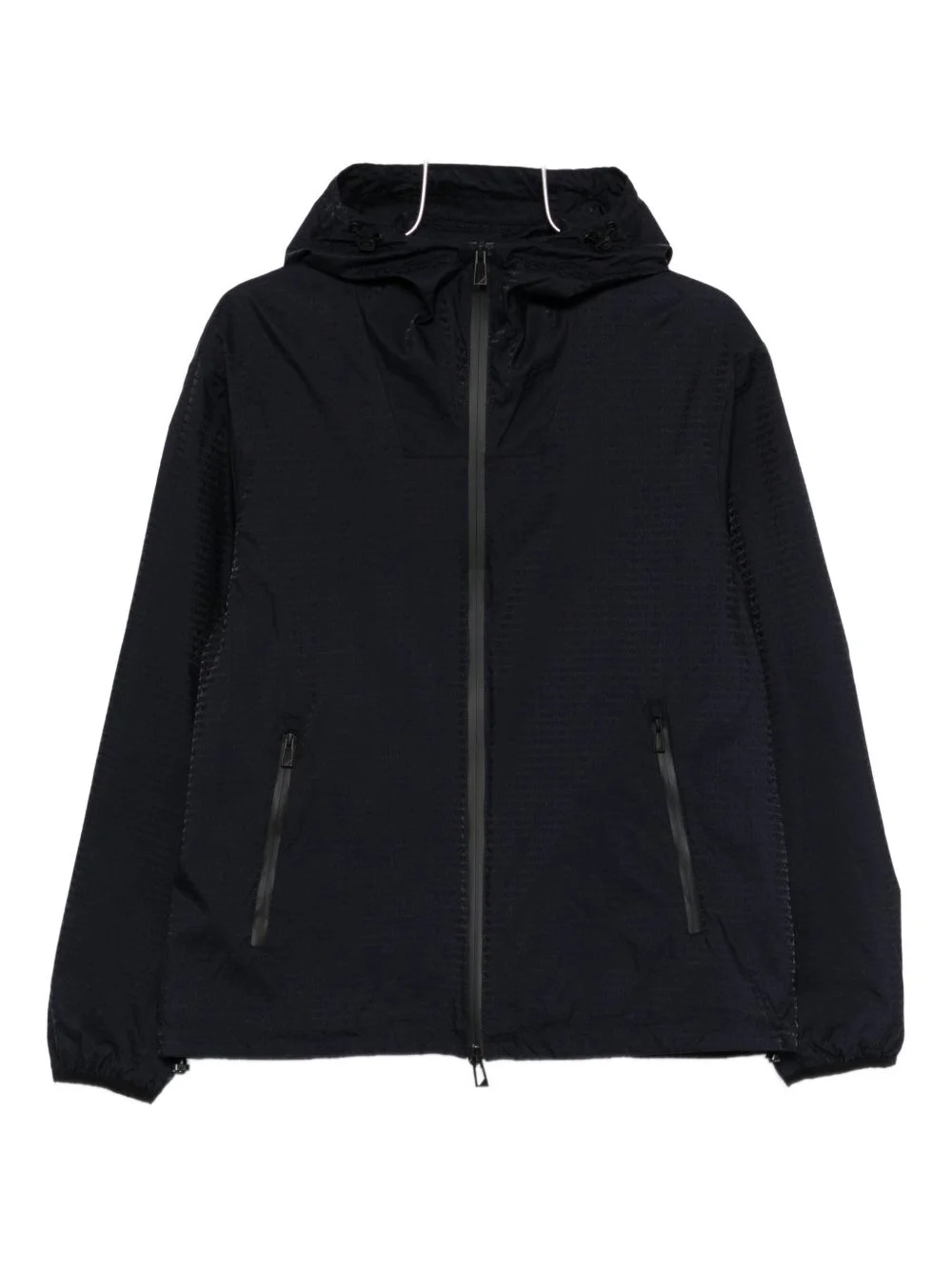 zip-up hooded jacket Highlights - Blue - Textured finish - Zip fastening - Side zip pockets - Hood Imported Composition Outer: Polyamide 100%, Polyurethane 100% Lining: Polyester 100% Washing instructions Machine Wash