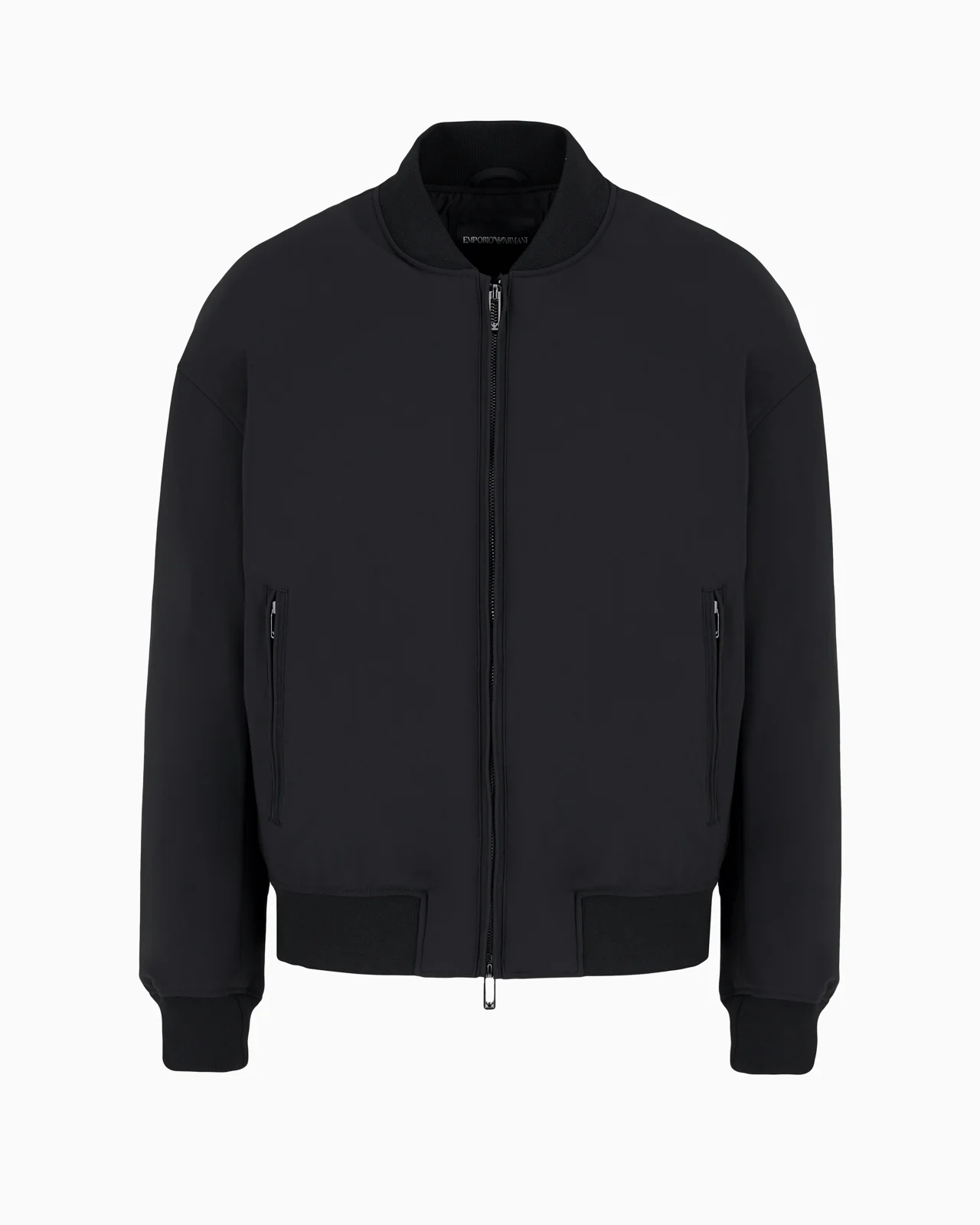 Nylon bomber jacket with zip fastening. A garment with clean, essential lines to finish multiple outfits in Armani style. Product Code: 6D1B671NUSZ10999 Details Composition 80% Polyamide 20% Elastane Stretch nylon Bomber-jacket collar Zip closure Side pockets with zip Long sleeves Elasticated trim Inside pockets with zipped compartments Fitting The model is 188 cm tall and is wearing size 48/M (Italian Size)