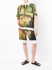 Forest graphic-print silk shorts Highlights - Green/multicolour - Silk - All-over graphic print - Elasticated waistband - Two side slash pockets - Two rear welt pockets - Knee-length Imported Composition Silk 100% SIZE & FIT Model measurements Height 6 ft 1 in(1.86 m) Bust/Chest 34.64 in(88 cm) Hips 36.22 in(92 cm) Waist 27.16 in(69 cm) FittingInformation This piece fits true to size. We recommend you get your regular size Cut for a relaxed fit Made with a lightweight fabric