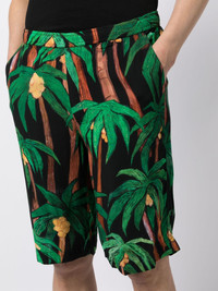 palm tree-print bermuda shorts Highlights - Black/multicolour - Ecovero™ viscose - Palm tree print - Two side slit pockets - Two rear welt pockets - Knee-length Made in Italy Composition EcoVero Viscose (LENZING) 100% SIZE & FIT Model measurements Height 6 ft 2 in(1.87 m) Bust/Chest 34.25 in(87 cm) Hips 36.22 in(92 cm) Waist 29.52 in(75 cm) FittingInformation Designed for relaxed fit, offering a comfortable loose fit over the leg The elasticated waist allows for a comfortable fit Made from a lightweight non-stretch fabric This piece fits true to size – take your usual size