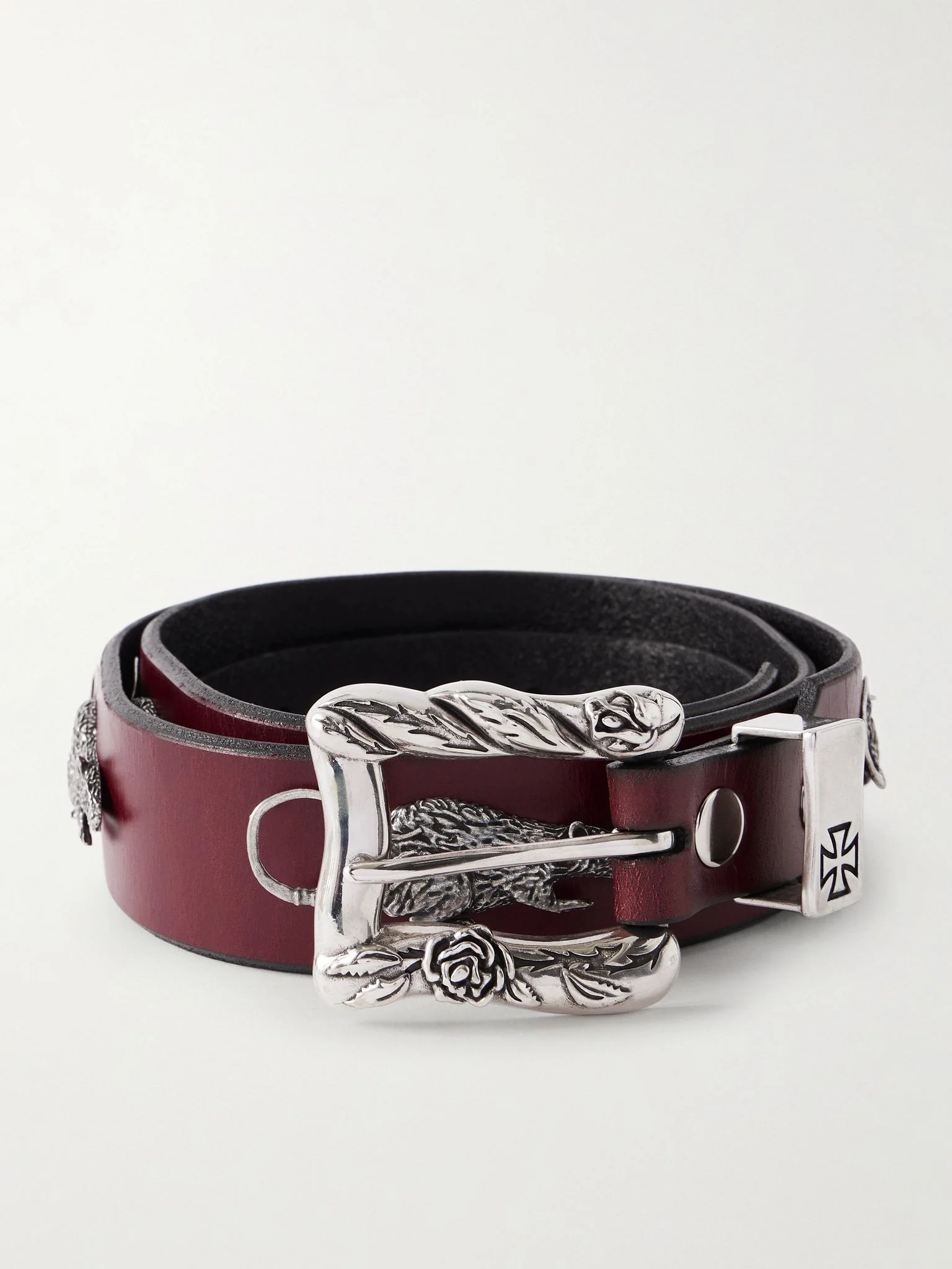 Enfants Riches Deprimes' belt is embellished with rat charms chasing each other from end to end. It's made from red leather and fitted with an antiqued buckle engraved with gothic-style roses. Size & Fit - Fits true to size. Take your normal size - Model is shown wearing a 90 - Model measures: waist size 32 Details & Care - Material: leather - Hardware colour: silver - Colour: burgundy