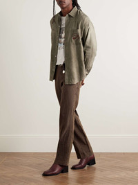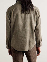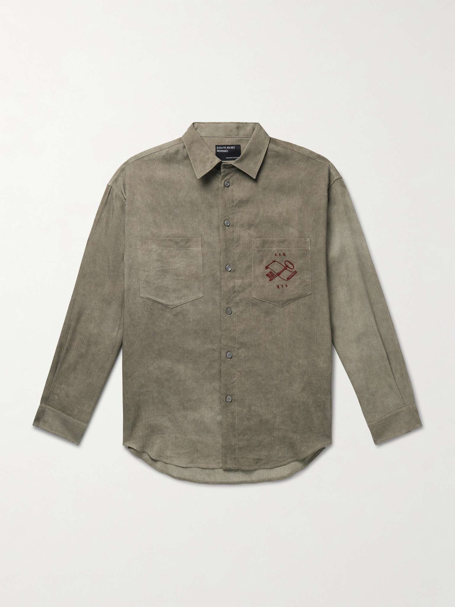 Enfants Riches Deprimes' 'Artist' shirt has a washed, faded appearance that makes it feel like an old favourite. It's been woven in Italy with plenty of breathable linen and cotton and is finished with vintage-style embroidery on the chest pocket. Size & Fit - Fits true to size. Take your normal size - Designed for a boxy fit - Dropped shoulder seam - Lightweight, non-stretchy fabric - Model is shown wearing a M - Model measures: chest 38"/ 96cm, height 6'2"/ 188cm Details & Care - Army-green melange linen, viscose and cotton-blend - Button fastenings - 46% linen, 31% viscose, 23% cotton - Mother-of-pearl: South Korea
