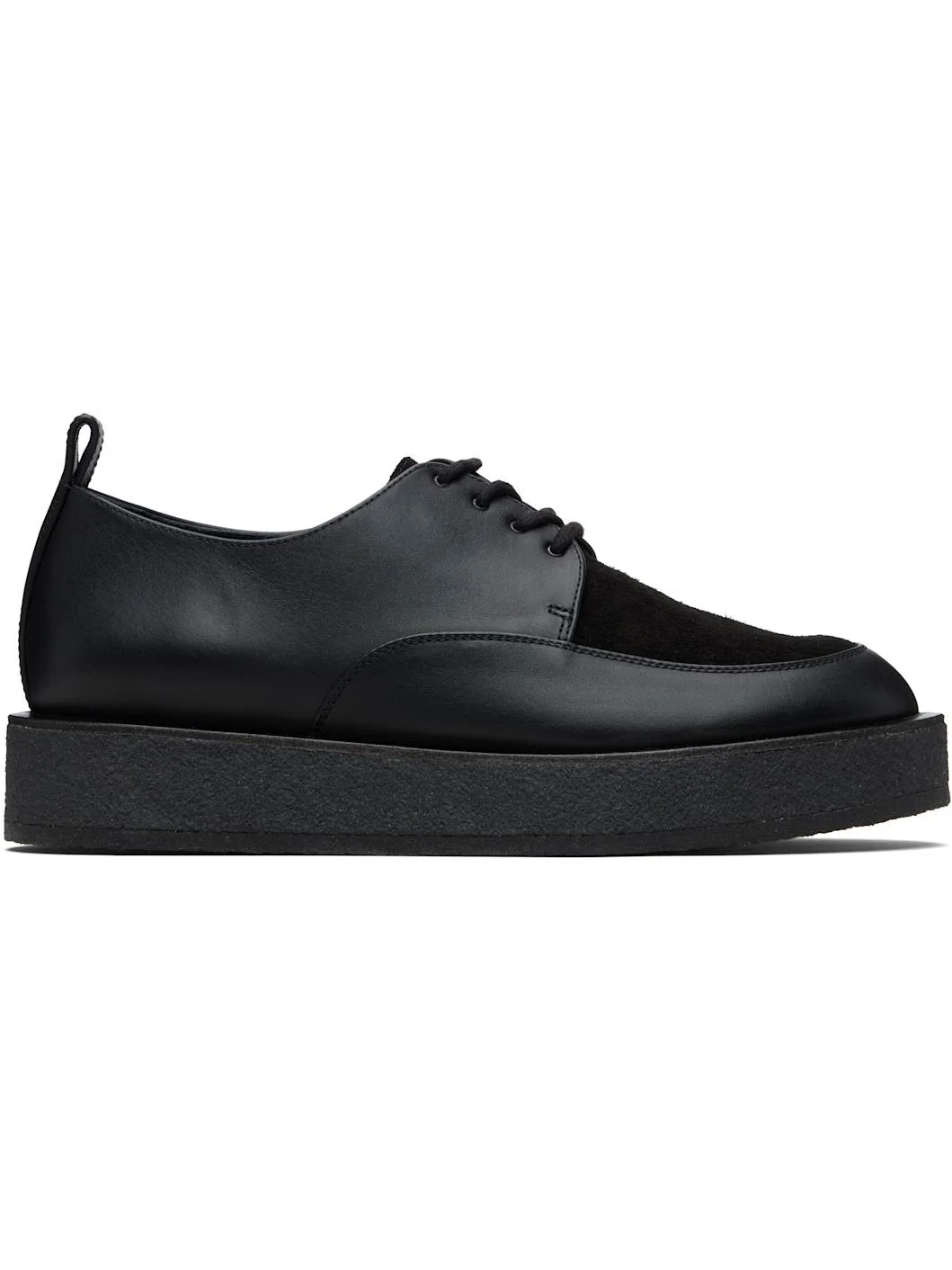 Buffed leather and suede oxfords. · Lace-up closure · Pull-loop at heel collar · Crepe rubber platform sole · Platform: H1.5" Supplier color: Black/Black Upper: leather. Sole: rubber. Made in Italy 252889M225000