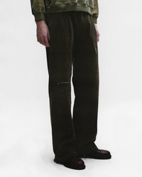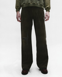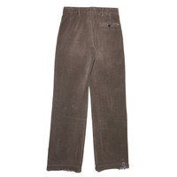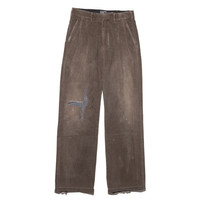 PLEATED TROUSERS IN JAPANESE COTTON BLEND 14 WALE CORDUROY. HOOK & EYE WAIST CLOSURE. ZIP FLY. SINGLE BACK POCKET WITH BUTTON CLOSURE. REPAIR DETAIL AT FRONT WITH ITALIAN VIRGIN WOOL PATCH. SIGNATURE VINTAGE WASH PROCESS. DISTRESSING THROUGHOUT. MADE IN THE USA.