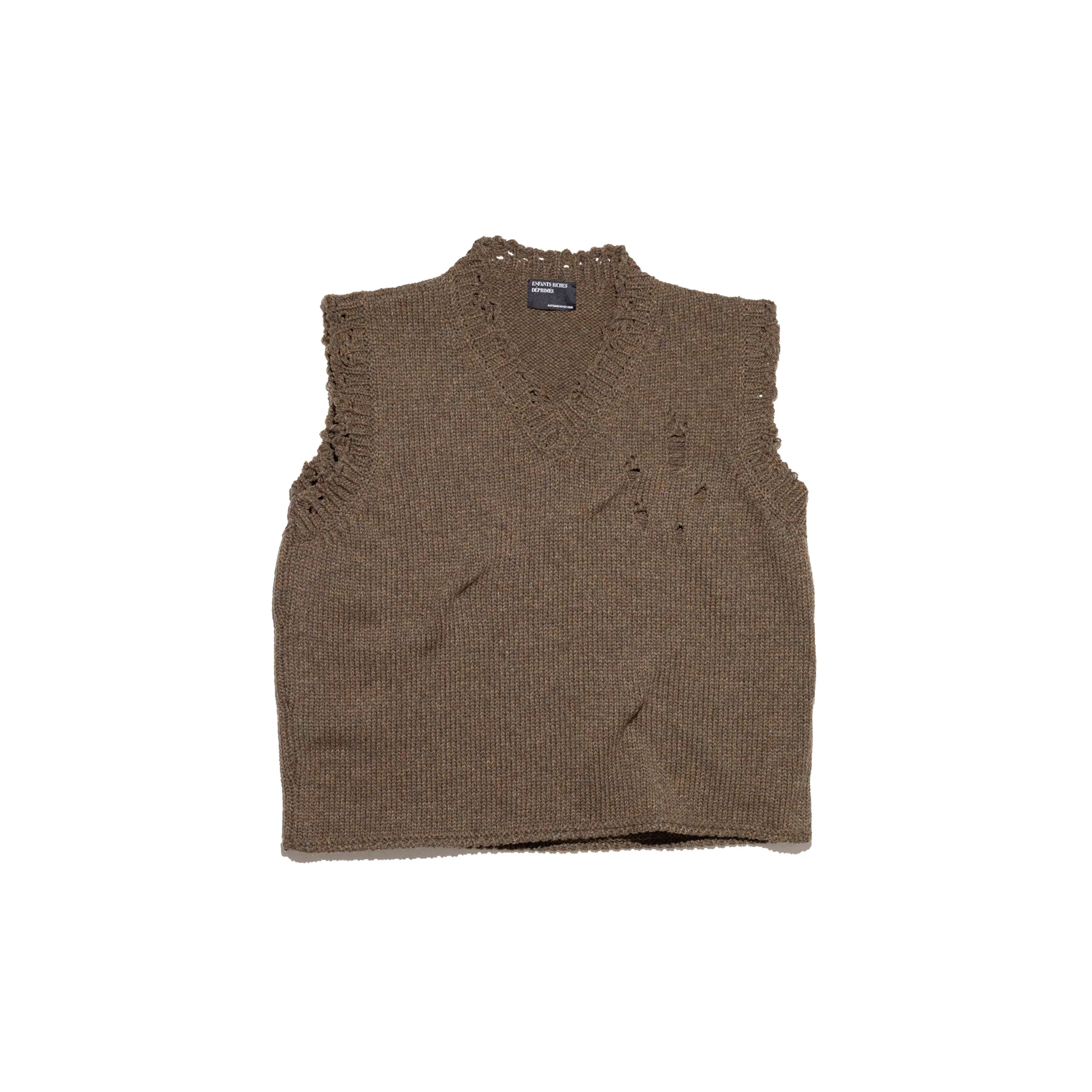 V-NECK SWEATER VEST IN LORO PIANA WOOL. DISTRESSING THROUGHOUT. MADE IN USA.