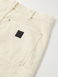Straight-Leg Distressed Panelled Herringbone Denim Trousers Cream