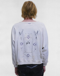 LONG-SLEEVE RAGLAN CREWNECK SWEATSHIRT IN HEAVY WEIGHT BRUSHED FRENCH TERRY. OVERSIZED SLOUCHY FIT. RIB KNIT AT NECKLINE, CUFFS, AND WAIST. PRINTED ARTWORK AT FRONT & BACK. SIGNATURE VINTAGE WASH PROCESS. DISTRESSING THROUGHOUT. MADE IN THE USA. SHIPS IN 3-4 WEEKS.