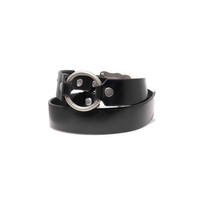 BELT IN HEAVY COWHIDE LEATHER. CUSTOM CAST WHITE BRONZE ROSE-ADORNED RING, BUCKLE, LOOP, AND TIP. METAL RINGS THROUGHOUT. MADE IN THE USA.