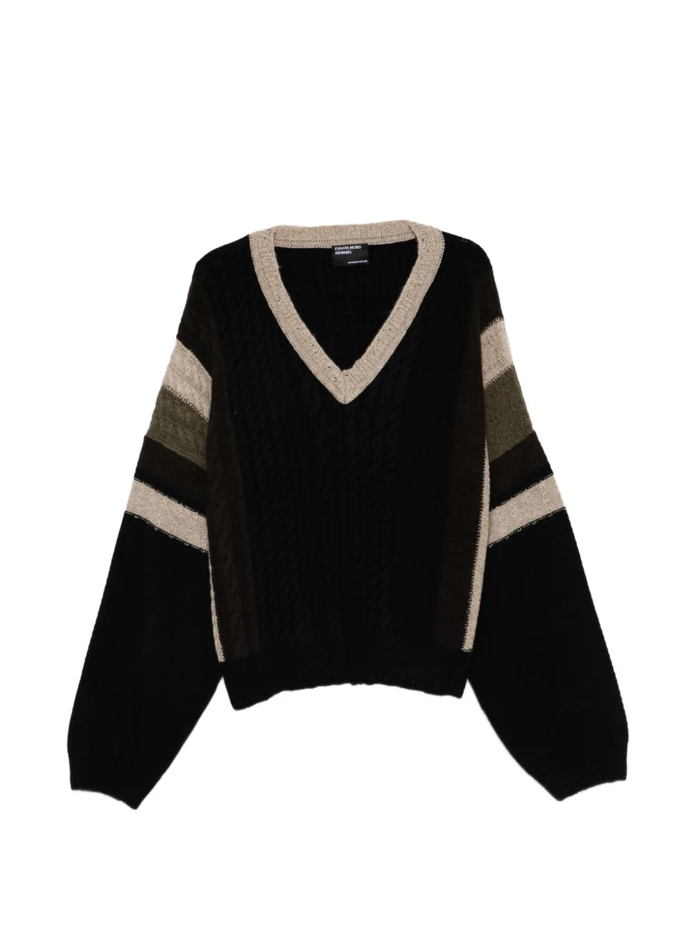 V-neck cable-knit sweater Highlights - Black - Striped sleeves - Cable knit - V-neck - Ribbed hem - Ribbed cuffs Made in United States Composition Cashmere 100% Washing instructions Dry Clean Only
