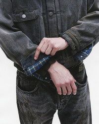 JACKET IN LIGHT-WEIGHT JAPANESE COTTON SELVEDGE DENIM (11OZ) WITH COTTON FLANNEL LINING.. SPREAD COLLAR. PATCH POCKET AT FRONT. LOGO-BRANDED BRASS HARDWARE AND CINCH-BACK WITH SILVER FINISH. DISTRESSING THROUGHOUT. MADE IN THE USA.
