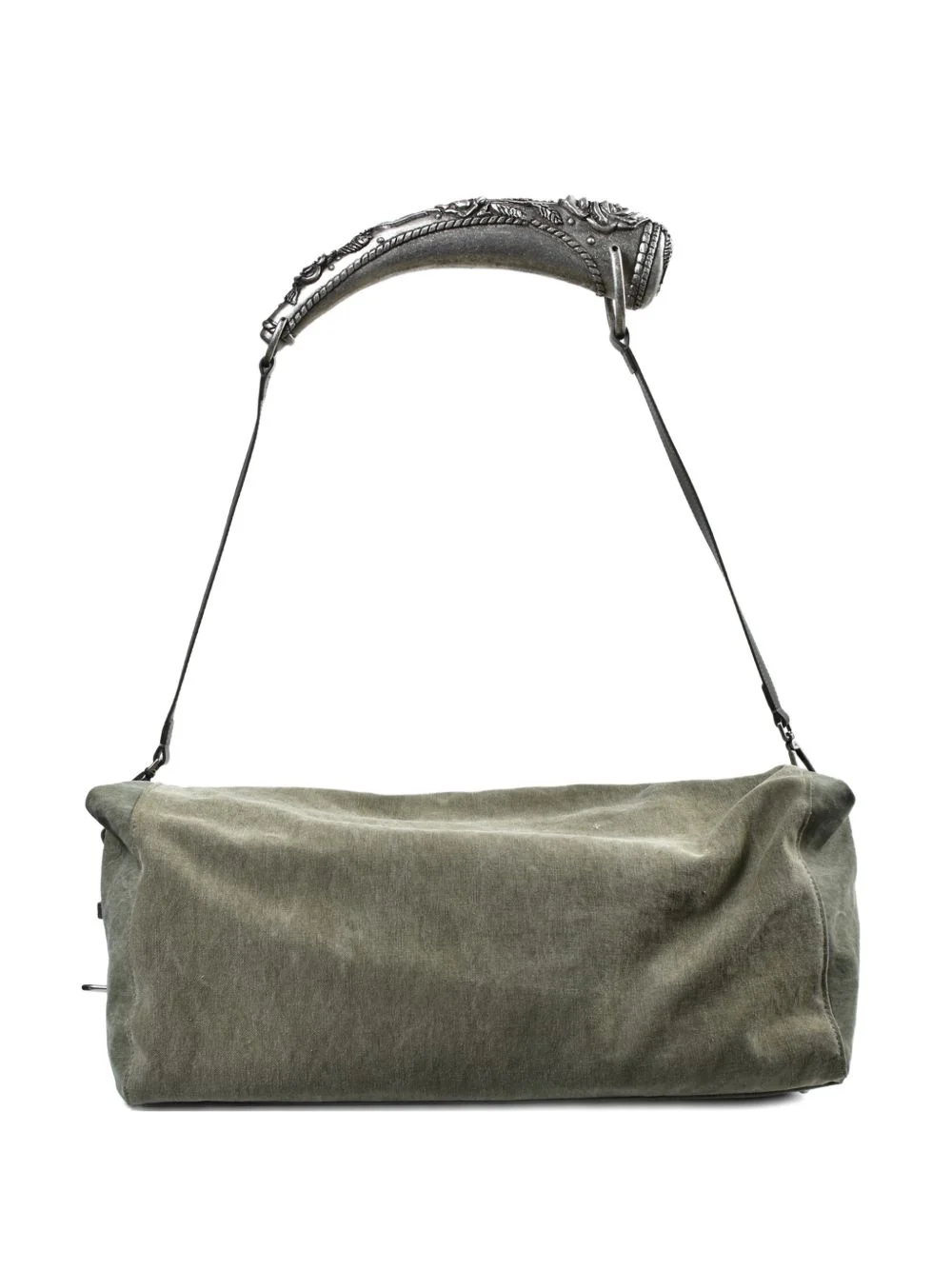 floral-handle shoulder bag Highlights - Olive green - Floral detail - Shoulder strap Imported Composition Outer: Calf Leather 100%, Cotton 100% SIZE & FIT Measurement DEPTH 8.66 in(22 cm) HEIGHT 10.62 in(27 cm) WIDTH 20.47 in(52 cm)