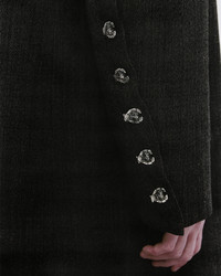 FULL LENGTH COAT IN SALT AND PEPPER WOOL WITH VISCOSE TWILL LINING. HIGH NECK DOUBLE BREASTED CLOSURE. LONG SLIT BACK VENT. CUSTOM CHERUB SHANK BUTTON HARDWARE AT CHEST AND CUFF. MADE IN ITALY.