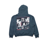 LONG-SLEEVE PULLOVER HOODED SWEATSHIRT IN MEDIUM WEIGHT JAPANESE LOOPWHEELED COTTON TERRY FLEECE. SLIGHT CROP, SLIGHT DROP-SHOULDER FIT. DOUBLE LAYER HOOD. RIB KNIT CUFFS & WAISTBAND. PRINTED ARTWORK AT FRONT AND BACK. SIGNATURE VINTAGE WASH PROCESS. MADE IN THE USA.