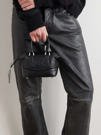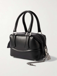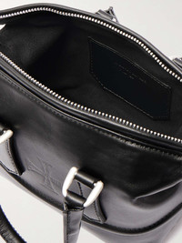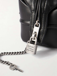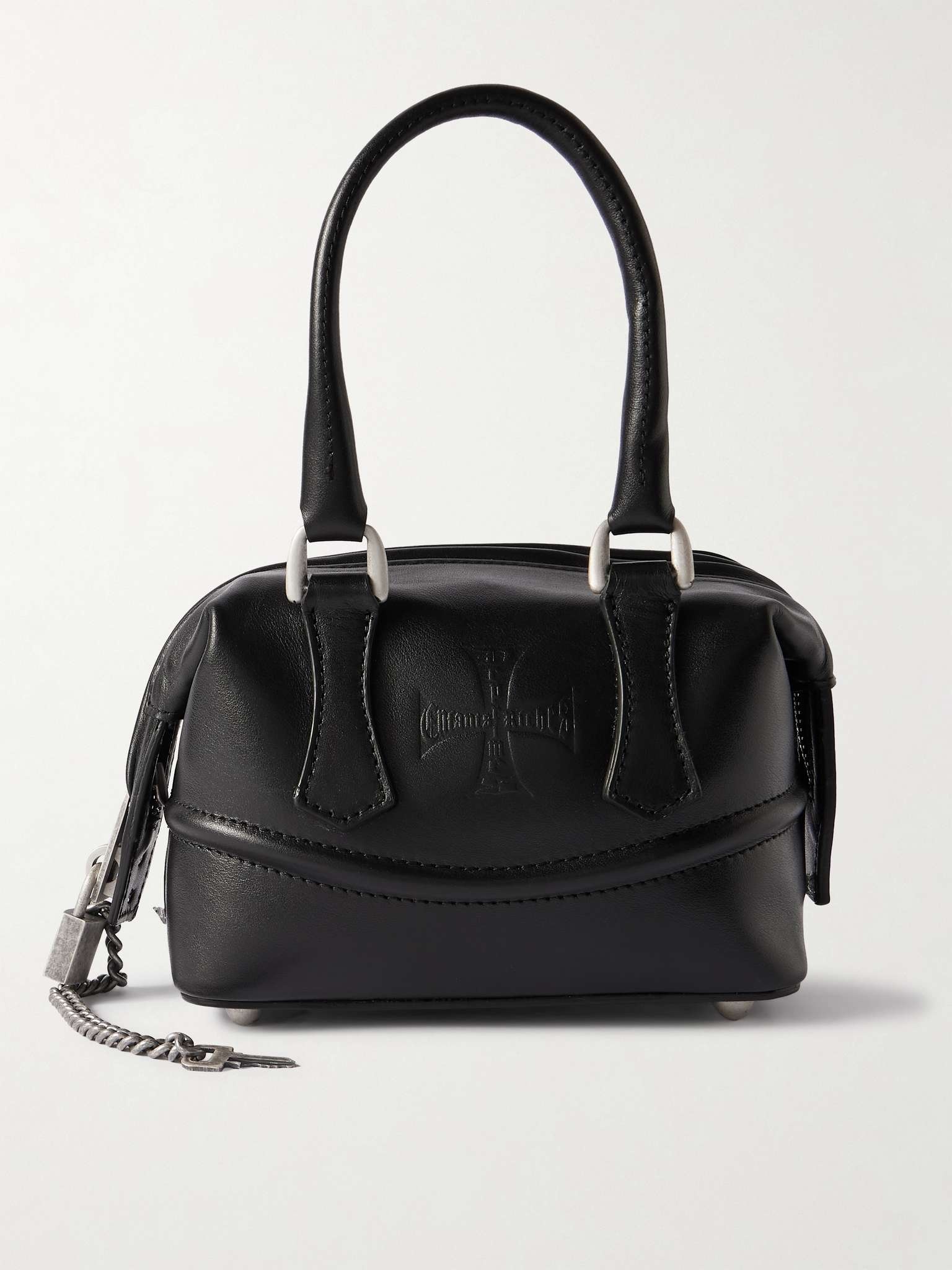 Classic bowling styles inspire Enfants Riches Deprimes' tote bag, but the design details align perfectly with its punkish energy. It’s been crafted in Italy from supple leather embossed with the label's cross iconography and features burnished silver-tone hardware, including a lock and key. Size & Fit - Handle Length: 10cm / 3.9in - Height: 12cm / 4.7in - Width: 16.5cm / 6.5in Details & Care - Black leather (Cow) - Top handles - Internal card slot - Fully lined - Lock and zip fastening - Comes with a dust bag
