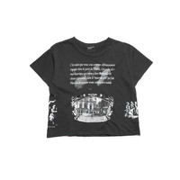 SHORT-SLEEVE T-SHIRT IN LIGHT WEIGHT VINTAGE TEXTURE COTTON JERSEY. BOXY FIT. RIB KNIT NECKLINE. SINGLE STITCH HEM AT WAIST AND CUFFS. PRINTED ARTWORK AT FRONT, BACK AND SIDES. SIGNATURE VINTAGE WASH PROCESS. DISTRESSING THROUGHOUT. MADE IN THE USA.