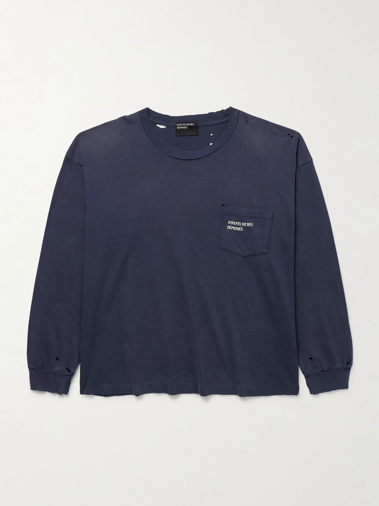 Enfants Riches Deprimes' T-shirt leans into a raw, deconstructed aesthetic. Printed with a signature logo along the chest patch pocket, it's cut from cotton-jersey and thoroughly distressed to look vintage. Size & Fit - Fits true to size. Take your normal size - Designed for a relaxed fit - Lightweight, slightly stretchy fabric - Model is shown wearing a M - Model measures: chest 38"/ 96cm, height 6'2"/ 188cm Details & Care - Faded-purple and white cotton-jersey - 100% cotton - Machine wash