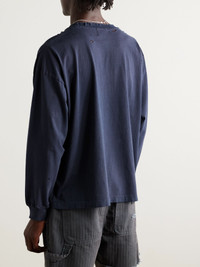 Distressed Logo-Print Cotton-Jersey T-Shirt Navy