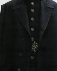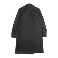FLY FRONT OVERCOAT IN TONAL BLACK PINSTRIPE VIRGIN WOOL BY LORO PIANA. VISCOSE TWILL LINING. STAND COLLAR. HIDDEN BUTTON PLACKET. WELT POCKETS AT WAIST. CENTER VENT AT REAR HEM. MADE IN ITALY.