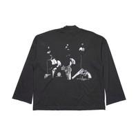 THREE-QUARTER LENGTH SLEEVE MOCKNECK T-SHIRT MADE OF HEAVY WEIGHT COTTON JERSEY. BOXY, OVERSIZED FIT. PRINTED ARTWORK AT FRONT AND BACK. SINGLE STITCH HEM AT WAIST. SIGNATURE VINTAGE WASH PROCESS. MADE IN THE USA.