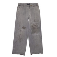 TAILORED TROUSER IN COTTON/LINEN TWILL. ZIP FLY WITH WITH LOGO-ENGRAVED HORN BUTTON CLOSURE. BELT LOOPS AT WAISTBAND. WELT POCKETS AT SIDES AND BACK. HEAVY DISTRESSING THROUGHOUT WITH HAND STITCHED REPAIRS. SIGNATURE VINTAGE WASH PROCESS. MADE IN JAPAN.
