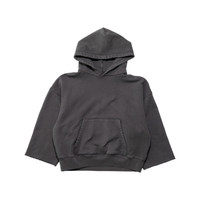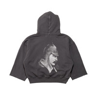 3/4 LENGTH SLEEVE PULLOVER HOODED SWEATSHIRT MADE OF HEAVY WEIGHT BRUSHED FRENCH TERRY. BOXY, DROP-SHOULDER FIT. DOUBLE LAYER HOOD. RIB KNIT CUFFS & WAISTBAND. PRINTED ARTWORK AT BACK. SIGNATURE VINTAGE WASH PROCESS. DISTRESSING THROUGHOUT. SAFETY PIN REPAIR AT HOOD. MADE IN THE USA.