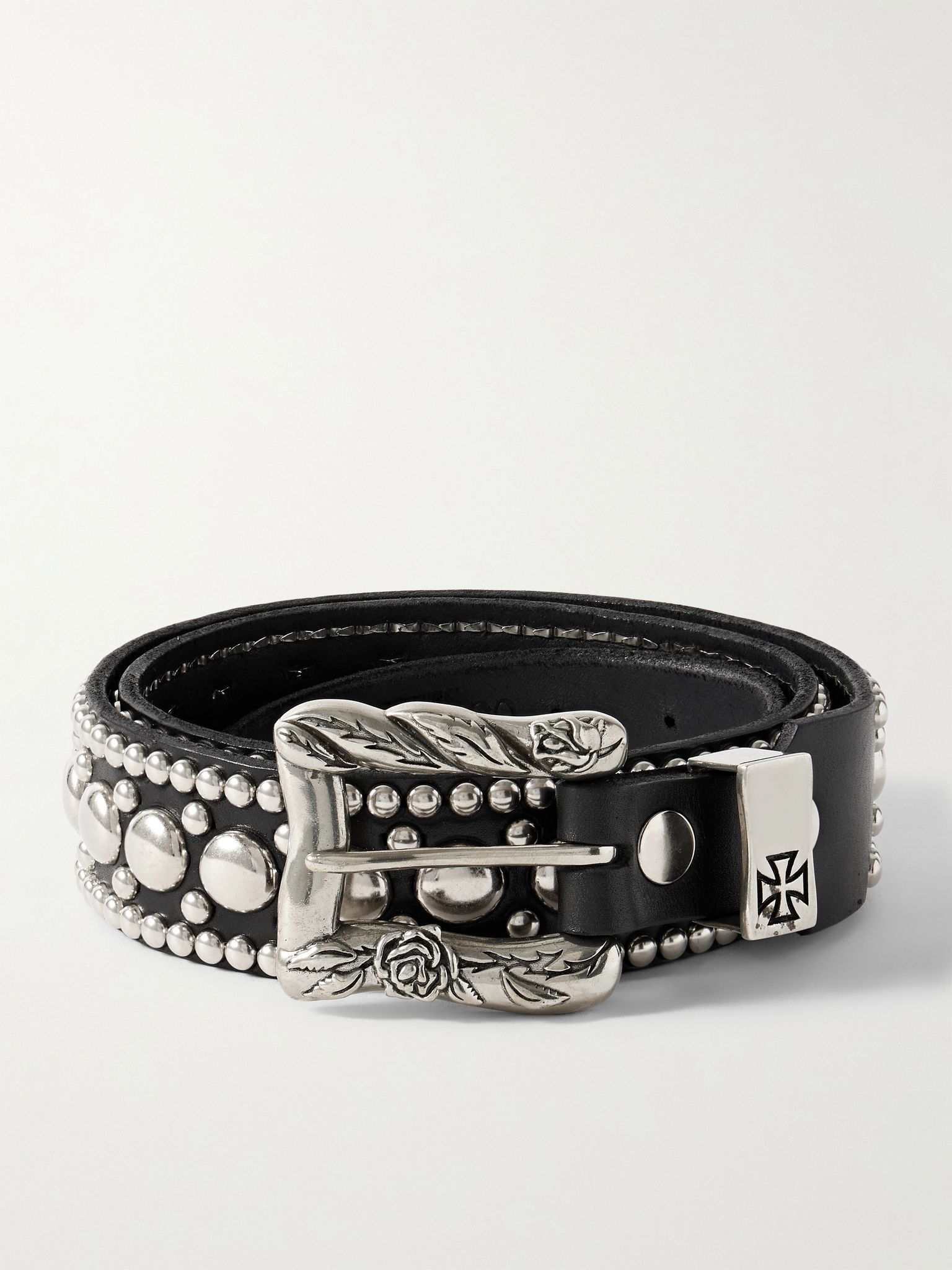 3.5cm Goodbye Franky Studded Leather Belt Black