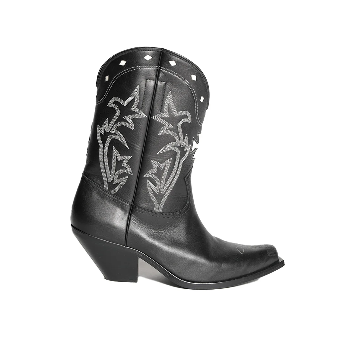 CALF HIGH BOOTS IN BUFFED CALF LEATHER. STACKED LEATHER CUBAN HEEL. STYLIZED LEATHER APPLIQUE THROUGHOUT. IRON CROSS AT FRONT SHIN. TWIN PULL-LOOPS AT ANKLES. LEATHER SOLE. MADE IN ITALY.