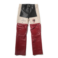 BOOTCUT BELT-CLOSURE PANT IN COWHIDE LEATHER. VISCOSE TWILL LINING. HOLLYWOOD WAISTBAND. BACK YOKE DETAIL. PANELLED CONSTRUCTION.. ZIP CLOSURE POCKETS AT KNEE PANELS. ARTWORK PRINTED AT FRONT & BACK. SIGNATURE ROSE BUCKLE AT WAIST. MADE IN ITALY.
