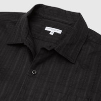 - 25S1A004-YS001 - Black Cotton Lace Stripe Jacquard - 100% Cotton - Front button closure - Jacquard stripes throughout - Patch pocket at the chest and waist - Camp collar - Regular fit - Made in USA