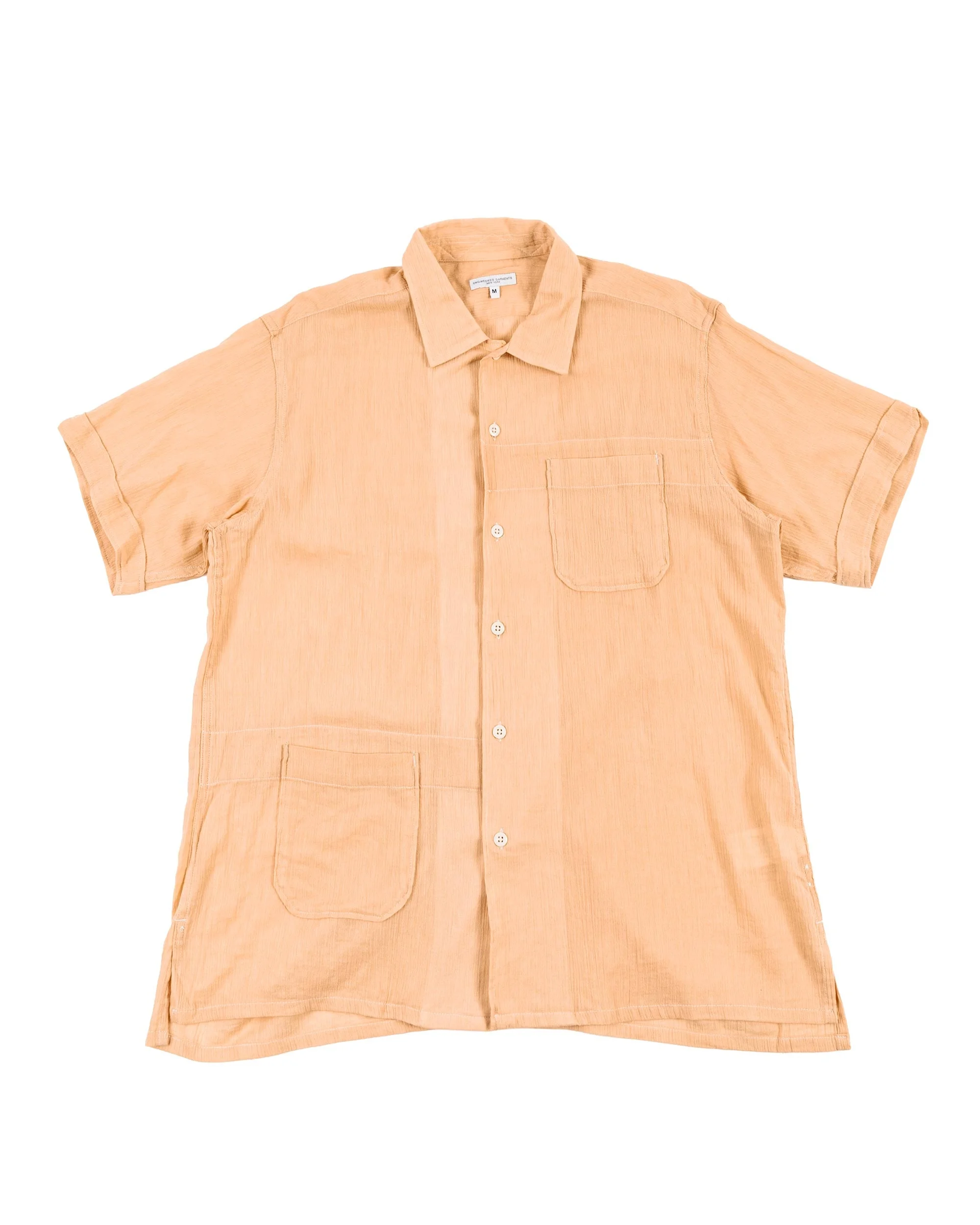 Normally I would refer to the camping reference of the camp collar shit...BUT NOT TODAY. Today we focus on the fabric! CREPE. It just screams, summer, in France, eating a crepe. Take the crepe out, but keep the France. This is the PERFECT fabric in every way. Colour, feel and of course giving you those ridges so the sweat doesn't take over your body. This my friends, is a must have. DETAILS - Open collar - Chest patch pocket - Hip patch pockets - Rear shoulder pleats - Split straight hem - 100% cotton - Made in USA - Model is 6’0” (183cm), 160lbs (73kg) and wearing M