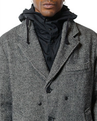 After a brief hiatus, the Engineered Garments Chester Coat makes its return, looking as composed as ever. Inspired by the 19th century Chesterfield, it keeps the classic manners but has learned a few modern tricks. The A-line cut, three-button front, and notch lapels keep things proper, while the detachable nylon hood adds a touch of practicality. DETAILS - Notch lapel with throat latch - Side pockets & rear flap pockets with hidden button loop closure - Two button closure - Rear centre vent - Snap button in hood - 50% wool 28% polyester 19% cotton 3% other fibres - Made in USAModel is 6'1" (186cm), 160lbs (73kg) and wearing size M
