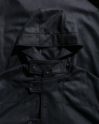 A duffle coat that swaps the usual toggles for oversized buttons. Cut long and roomy (knees, consider yourself covered), it comes with a hood and chin strap for when the cold gets personal. Snap-button vents at the back should you ever need to let off steam. DETAILS - Snap button adjustable hood with throat latch - Patch hip pockets - Snap button closure with additional button tabs - Button tab sleeve adjusters - Internal carry straps - 85% wool 15% nylon - Made in USA - Model is 6’2” (189cm), 160lbs (73kg) and wearing M