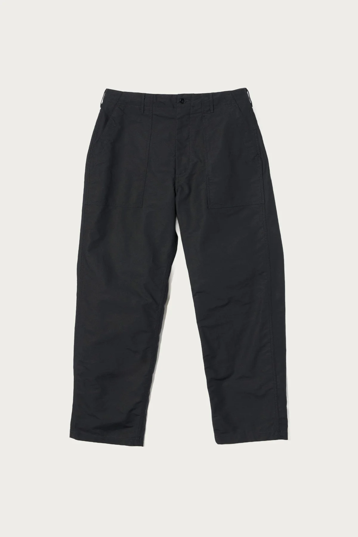 A core EG silhouette crafted from a breathable but structured double cloth. These fatigue pants feature patch front pockets, rear button-flap pockets, and adjustable drawstring for a tailored fit without tailoring. The black tone dresses up easily-- toss it on with a wool blazer or chore coat for an effortless office-to-evening rotation. - Midweight double cloth cotton - Patch front + flap back pockets - Adjustable drawstring - Made in USA - Black