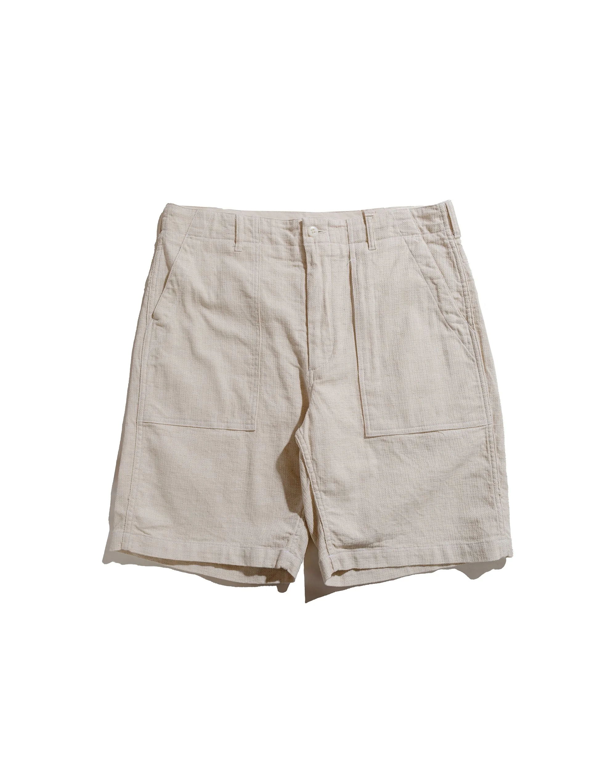 The fatigue short. Tried, tested and true. The true part, I have no idea what that means, but I will tell you this. I've owned many fatigue shorts, in many colours, in many fabrics and they have NEVER failed me. Fit, fabric and and feel. No one else compares....ahhhhh that's where the TRUE comes in! I'm spitting truths! DETAILS - Drawstring waist & zip fly - Front patch slash pockets with hidden zip pocket on left - Rear button flap patch pockets - 90% cotton 10% linen - Made in USA - Model is 6’2” (189cm), 160lbs (73kg) and wearing M