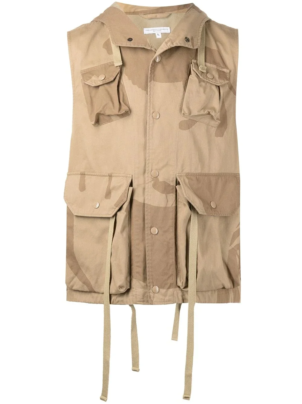Field animal-print gilet beige cotton twill weave animal print drawstring hood front button fastening two button-fastening chest pockets two side patch pockets sleeveless rear button-fastening pocket Made in United States Composition Body: Cotton 100% SIZE & FIT Model measurements Height 6 ft 2 in(1.88 m) Bust/Chest 38.18 in(97 cm) Hips 37 in(94 cm) Waist 29.92 in(76 cm) FittingInformation This piece fits true to size. We recommend you get your regular size Cut for a loose fit Made with a mid-weight non-stretch fabric Washing instructions Machine Wash