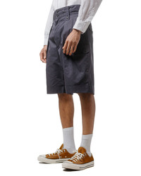We've been waiting to bring this back for years. The Gurkha short. This piece is rich in history among us EG historians. We recount missed purchases that we regret and it always comes back to the Gurkha. Don't believe me, ask my friend Rajiv. He still talks about them to this day. It's been 12 years. Well here's the updated version and regret will be no more. New waist closure and an updated side pocket placement. These are ALL good things. So welcome back Gurkha, you've been missed. DETAILS - Double reverse pleated front - Double button waist with zip fly - Button belt loops - Side seam pockets & rear button flap pocekts - Button flap side pocket on left - 100% cotton - Made in USA - Model is 6’0” (183cm), 155lbs (70kg) and wearing S